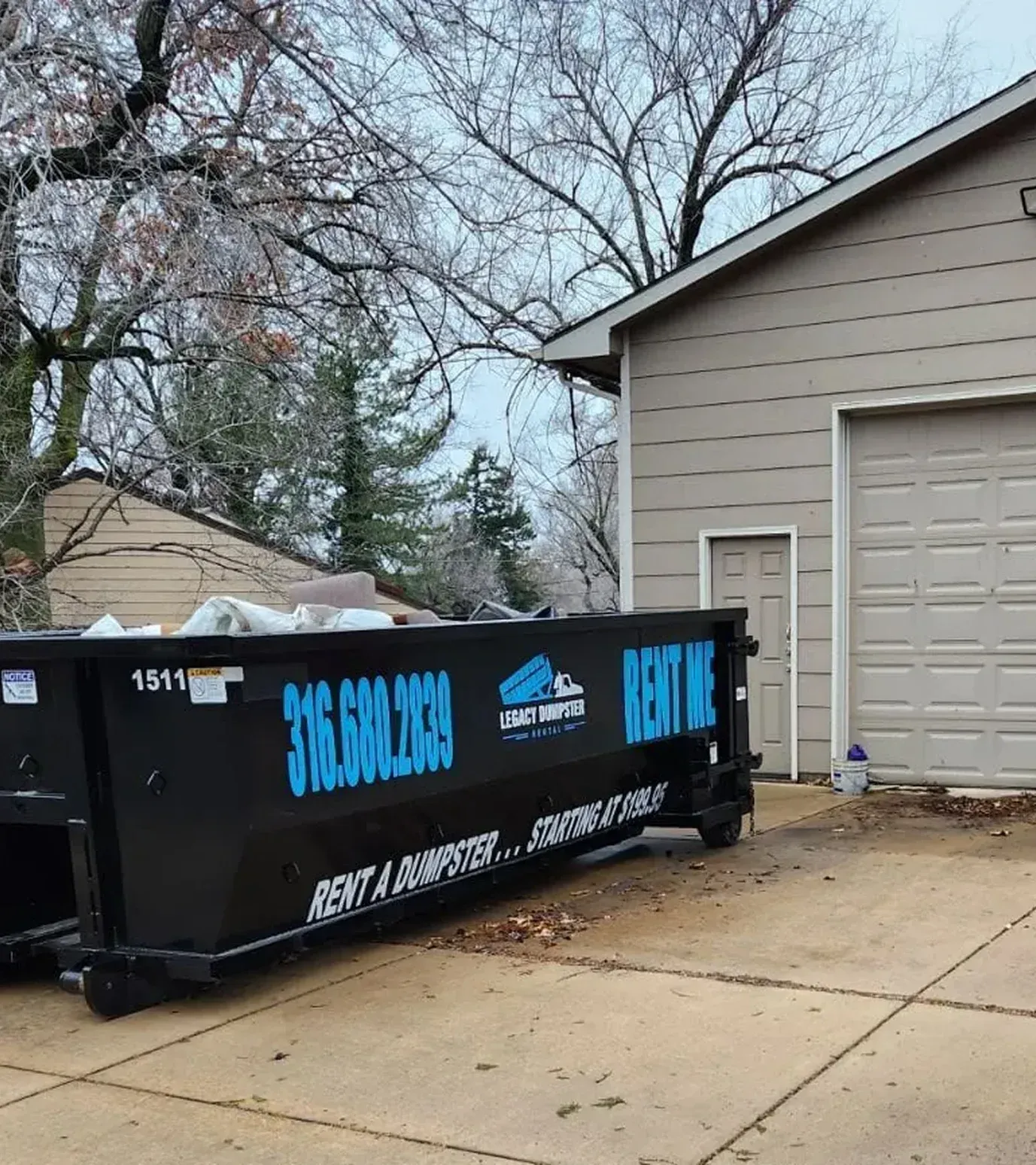 For Derby homeowners tackling renovations, cleanouts, or landscaping, Legacy Dumpster offers the perfect residential dumpster rental solutions. Our variety of dumpster sizes and knowledge of Derby's local regulations ensure a smooth rental process. We'll assist in selecting the right dumpster for your project, simplifying debris disposal.